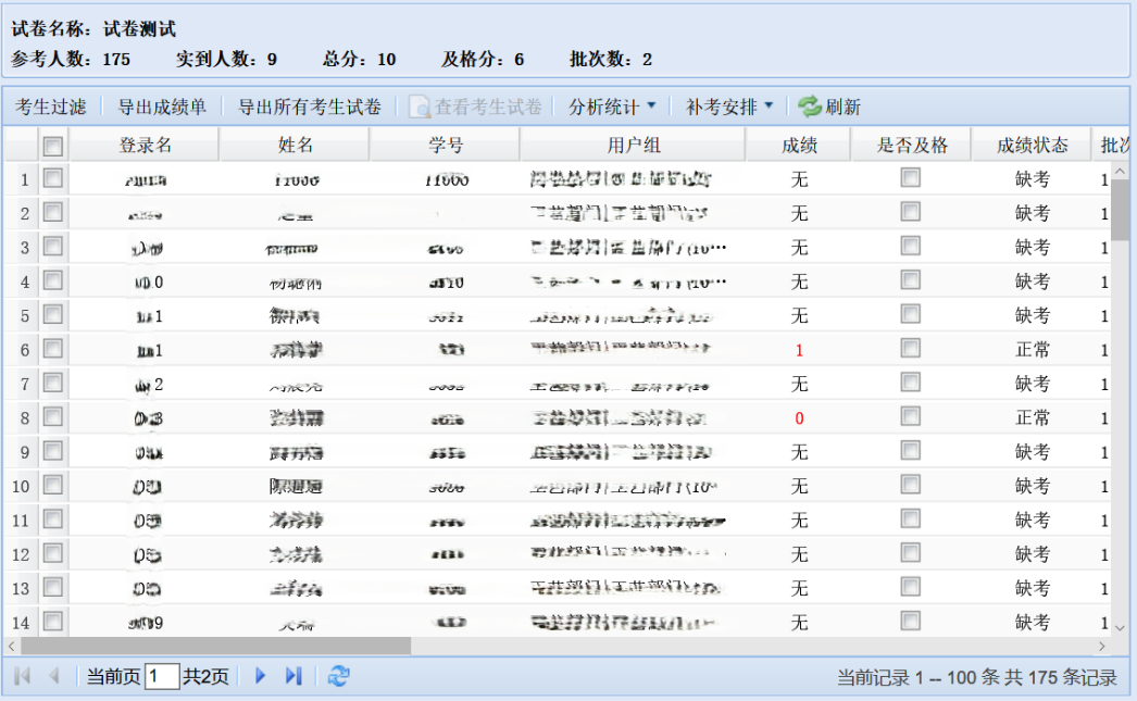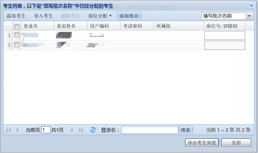 (1) 添加考生:按条件搜索学生,选择学生,添加到考试。